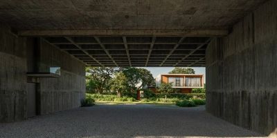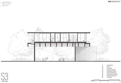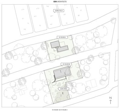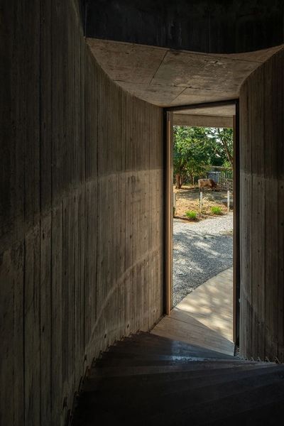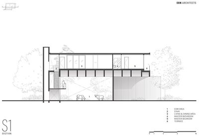 米高,达到原住宅屋顶的高度,从而巧妙地满足了这些需求。建筑仿佛被“架空”于空中,形成类似两层的效果,而地面层则作为花园与开放空间,供奶牛活动。