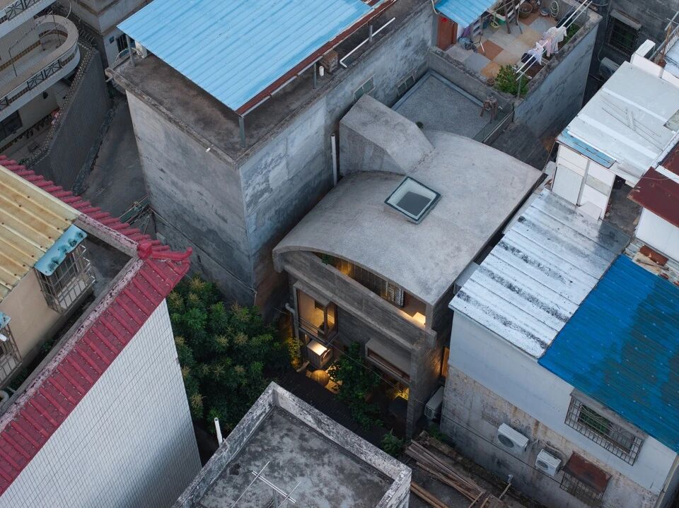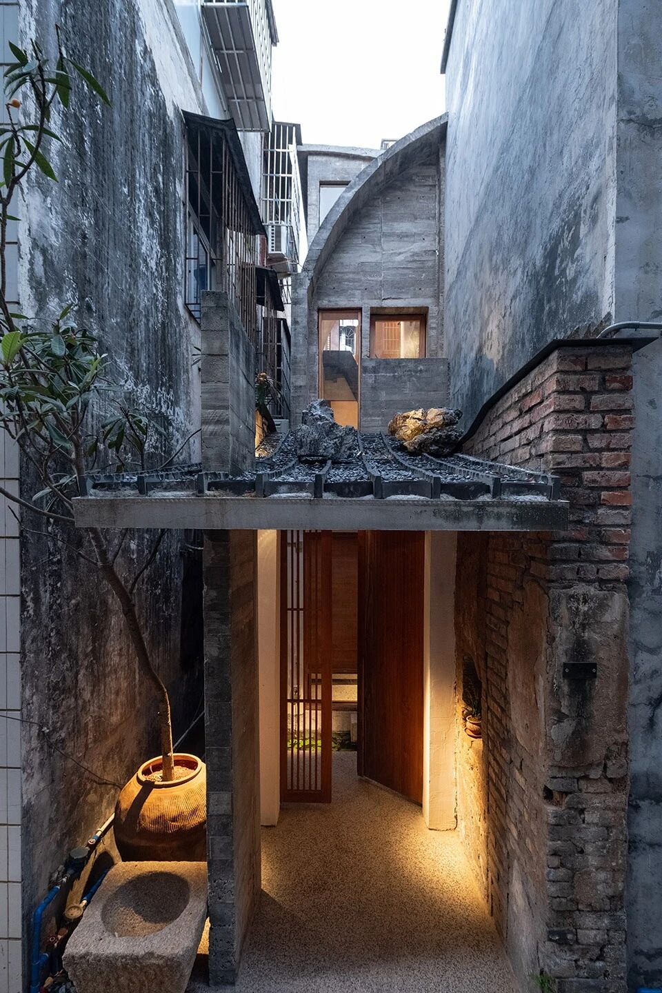 平方米坍塌祖宅重建项目,作为实践对象,在高密度城中村语境下,如何用建筑回应家族记忆、地域气候与复杂的邻里关系。项目面对极限的空间条件,用“时间剖碎”、“微景框借”、“呼吸建构”与“材料诚实性”的方法,对抗常规的封闭速成模式,将建筑锚固于场地历史纹理之中,并将 “爬梯”、“中心柱”、“谷仓”“园池” 等空间原型进行当代转译,设计保留并重构老墙、用弧形屋顶消解压迫感,以及建构微缩园池等方式,在方寸之地筑建一个连接过去与现在,兼具日常性与精神性的“文化原乡”。实践当下城市的微更新与社区提供一种基于人文出发与精细设计的新尝试。