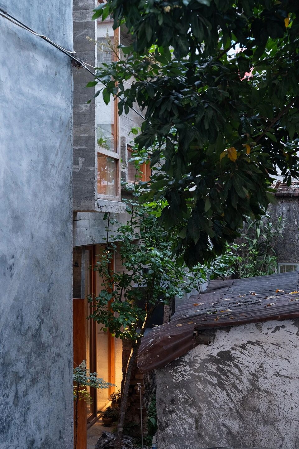 “掏洞”操作。这些洞口大小、形状、高低各异,其功能多元:一是引入光线,使自然光成为刻画时间的画笔,在室内投下流动的光影;二是引导视线,形成一系列精心框取的景致,将外部的绿意、天空乃至墙隙造影引入室内视野;三是促进通风,与后续的通风系统结合。老墙由此从一个封闭的边界,转变为一个具有渗透性的、连接内外与古今的媒介。