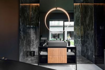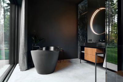 大面积玻璃幕墙与黑色元素形成视觉平衡,使室内与周边景观产生持续互动。就连桑拿房的玻璃隔断也别具匠心——既保障隐私又可欣赏花园景致,实现双重功能。