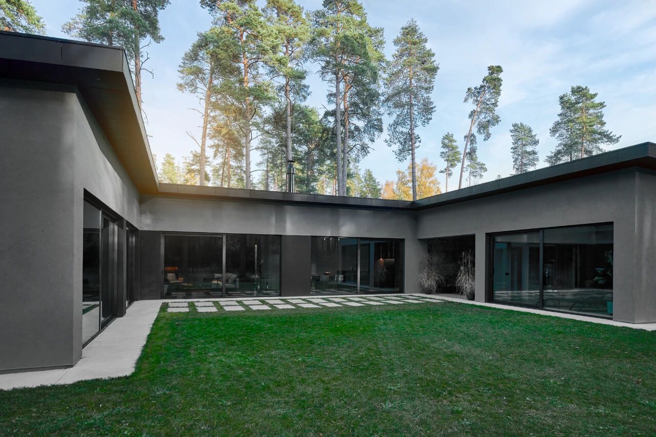这座U型布局的住宅以开阔的绿色庭院为核心,实现室内外空间的无缝衔接。通体玻璃幕墙打破空间界限,既将自然景观引入室内,又通过整体式临街立面保障隐私。建筑师的方案获得建筑主管部门赞誉,与周边低层社区浑然一体,强调比例协调而非浮夸装饰。