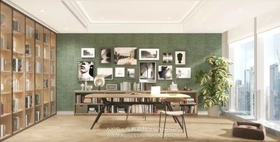 走进中轴设计的办公室,最引人注目的是无处不在的艺术品与堆积如山的图书。他解释道,藏书源于夫妻二人热爱阅读的习惯;而艺术品的充盈,则基于对当代豪宅设计的深刻理解。他观察到如今的业主素养很高,许多人自身就是收藏家,因此