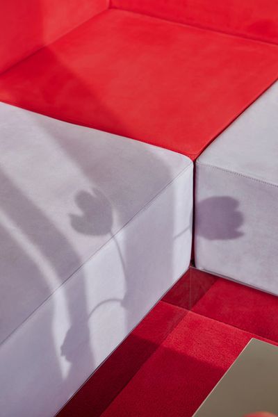 材质成为叙事的语言。紫雾色由 Sybarite 精心选定,与品牌标志性的红色相辅相成,赋予空间轻盈、灵性的气质。© Marine Serre