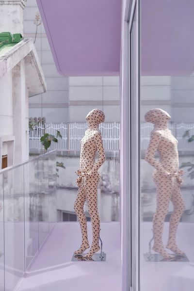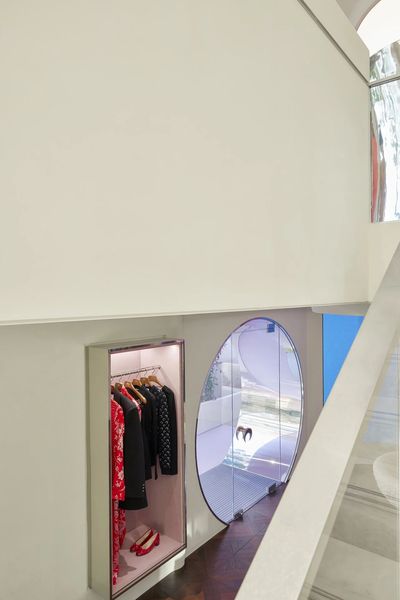 许愿之后,旅程就此展开,到访者将探索精心陈列的配饰与服饰。橱窗内的模特引导顾客继续上楼,墙面上浮雕般的石膏半身像轻柔浮现,仿佛墙面在呼吸,配饰陈列其上,勾勒人体与欲望之物的诗意对话。