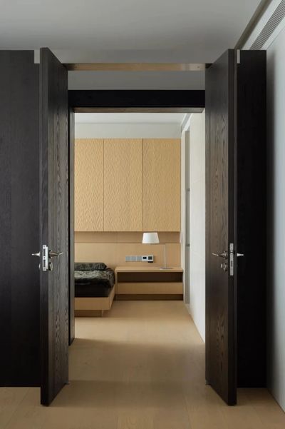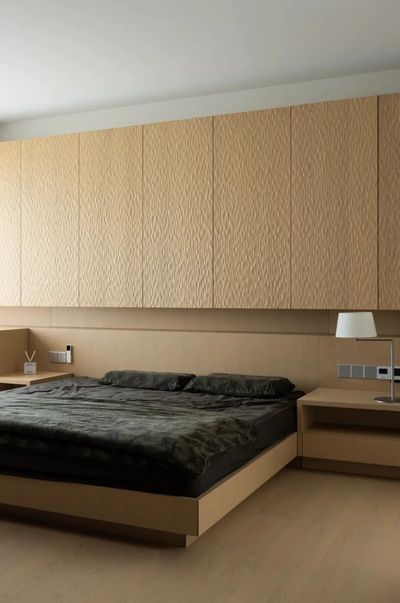 家的私密区域,被演绎为一场富有节奏的空间序列。过渡性的前置设计,为日常起居提供了从容的仪式感。步入主卧区域,温润的原木色系瞬间包裹了周身,构筑成一个浑然天成的休憩盒子,简意的形体与统一的色调,赋予空间无比的安定与包容。