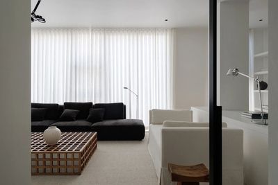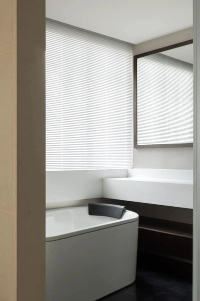 墨与白的对比利落干脆,布局恪守着现代生活的理性,临窗而设的浴缸则回应感性的需求,营造全然放松的体验。