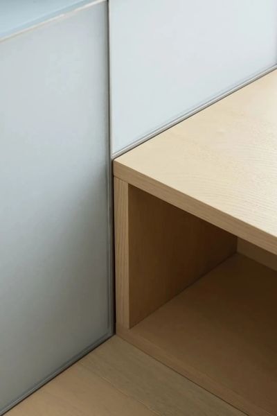 从客厅巧妙“借”来的一隅空间作为主卧的衣帽间,它保留了与客厅窗户的连接,让光源为两个区域共享—自然光从客厅漫入,也为狭长的衣帽间注入明亮的呼吸感。