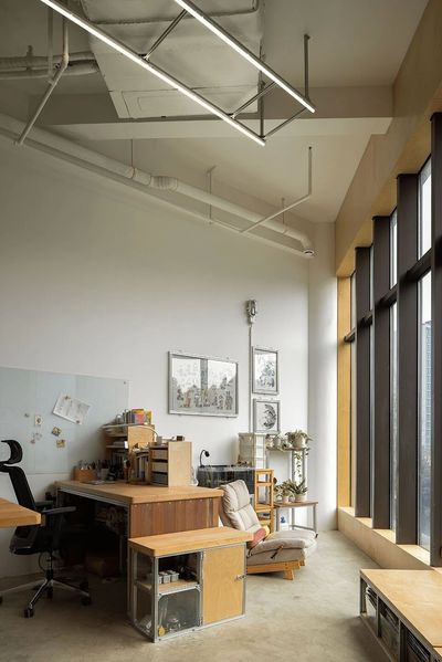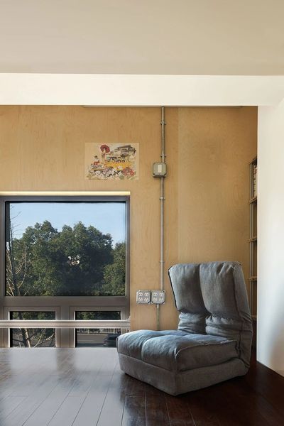 水泥地面、海洋板墙顶与乳白色调自然交融