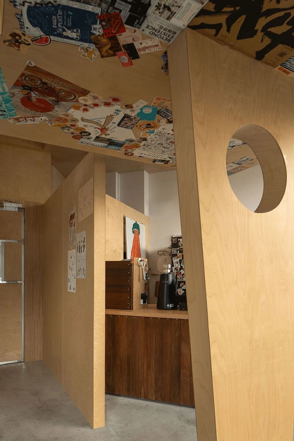 顶面与墙身布满个性贴纸、插画海报,从趣味图案到人文艺术创作,以碎片化拼贴形式赋予空间叙事性。诉说多元的故事篇章,构建起与消费者情感共鸣的纽带。
