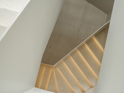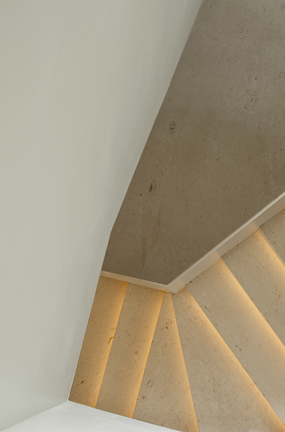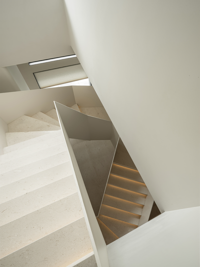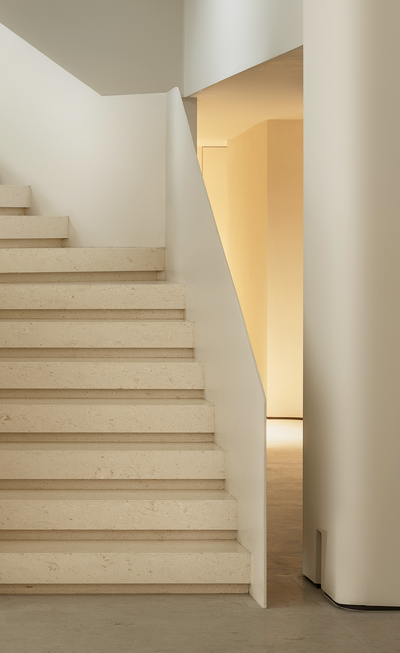 楼梯像艺术装置一样将空间连接在一起,每一次脚步的落下,仿佛是在与空间进行着一场无声的对话。像是家里那盏永远为你亮着的夜灯,带着熟悉又安心的温度,把楼梯区域变成了家中一个格外温暖的小角落。
