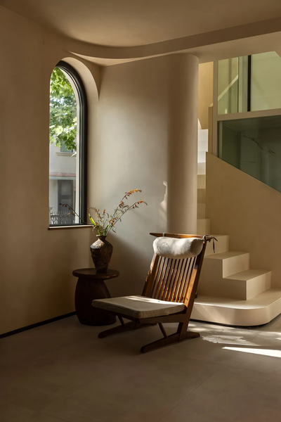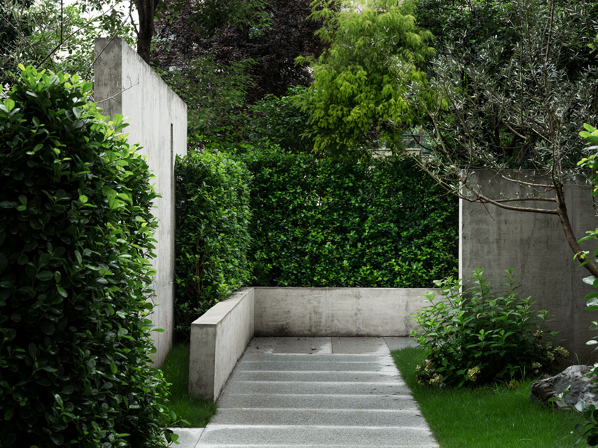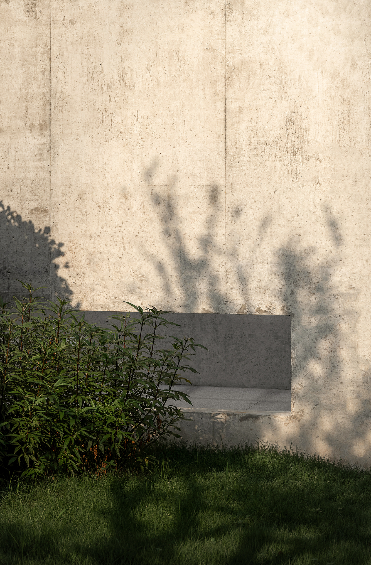 通过庭院转折,让归家的感受变得放松,视线的落点创造不同景致,用富有质感且原状态的材料让院落回归本质。树影摇曳,投射在粗糙水泥墙上,传递了时光的温柔絮语。每一道光影的游走,都似是岁月在轻轻摩挲,将生活的琐碎与喧嚣悄然抚平。