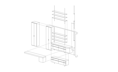 空间上集中交通空间,释放功能空间,让居住和视觉体验自然流动起来。开放的空间形式同时也象征着边界的消融,将建筑的范畴拓展到了场域性的设计,生动的场景使得记忆自然发生。