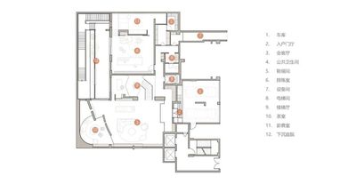 在既定的建筑限定框架下,透过在墙面开圆形洞口的方式,保障了使用者对独立私密环境要求的同时,也满足了开放交流的功能需求。使空间更有呼吸感觉,变得生动有趣,达成功能与空间的合理配置。