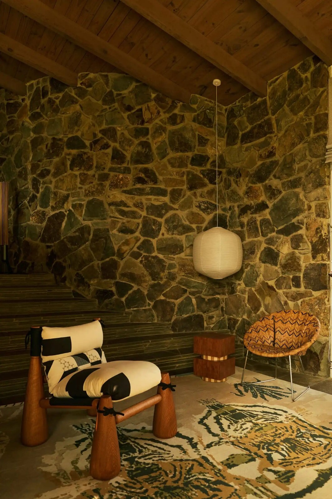 翻新的住宅被巧妙地规划为多个功能区,既提供了家庭成员日常活动的便利,又能满足大家庭和亲友来访时的灵活需求。设计师通过引入自然的泥土色调和耐磨的材料,打造了一个温暖、质朴的家居氛围。地面采用了铁丝拉丝和磨砂漆的欧洲橡木地板,墙面则采用了涂漆木镶板,增添了温暖的质感。而在主要服务区域,如浴室,设计师则选用了与周围景观呼应的砂岩元素,使得天然材料与外部环境之间形成了强烈的视觉连接。